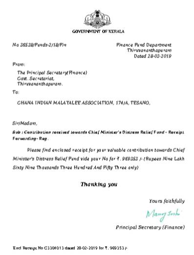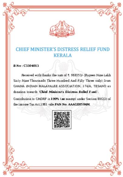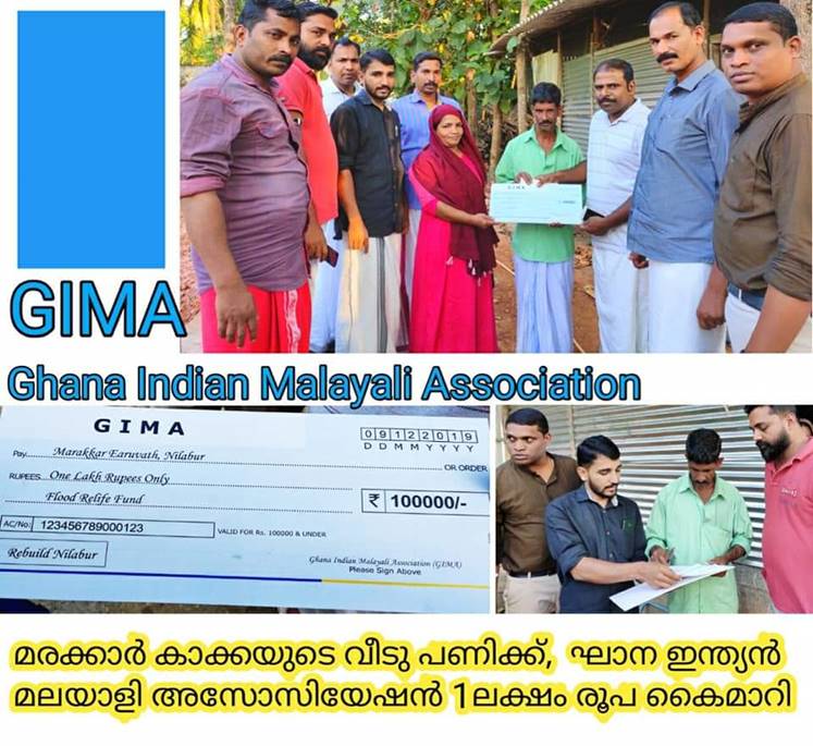 GIMA have contributed INR 100000 to a flood victim in Palakkadu Dist. As part of Rebuild Nilambur project in 2019 We also Donate GHC 2500 to MAHARASHTRA MANDAL GHANA to help people of their state.